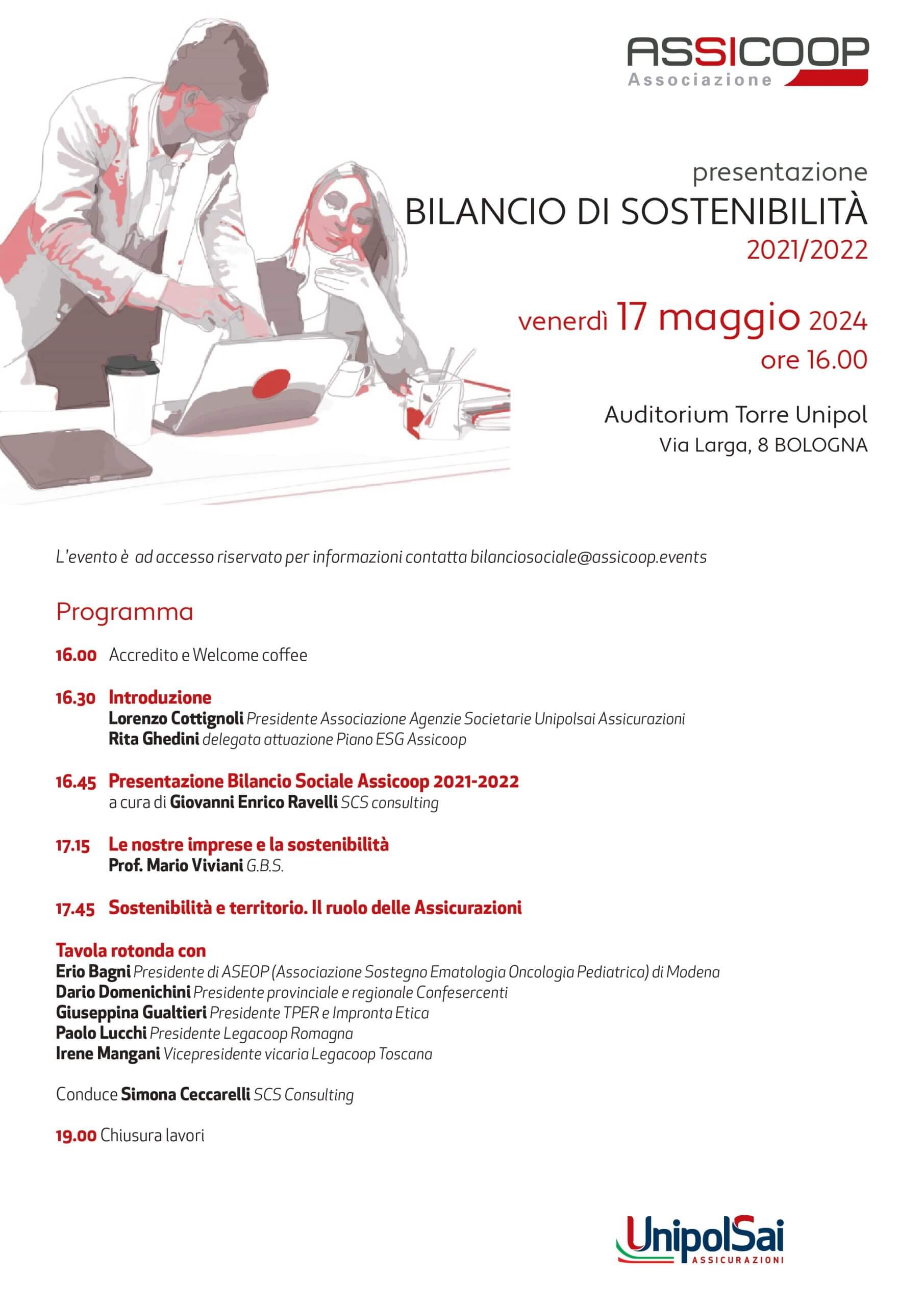 Il 17 maggio scorso, presso l’auditorium Torre Unipol di Bologna, abbiamo presentato il nostro quinto bilancio di sostenibilità per il biennio 2021-2022. Questo bilancio non solo rende conto del lavoro svolto, ma ci guida anche verso i nostri impegni futuri, attraverso la riduzione dell’impatto ecologico delle nostre operazioni, il sostegno alle comunità locali e la promozione della diversità e dell’inclusione.